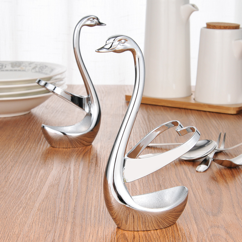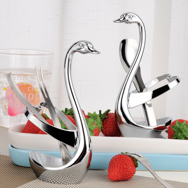 Qimei creative Cygnus stainless steel fruit fork set base Western tableware Coffee spoon combination fruit label