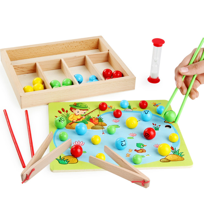 Children practice with chopsticks clip Costume House Wine Toy Nursery School District Corner material Puzzle Early Teaching Clip Beads Teaching Aids