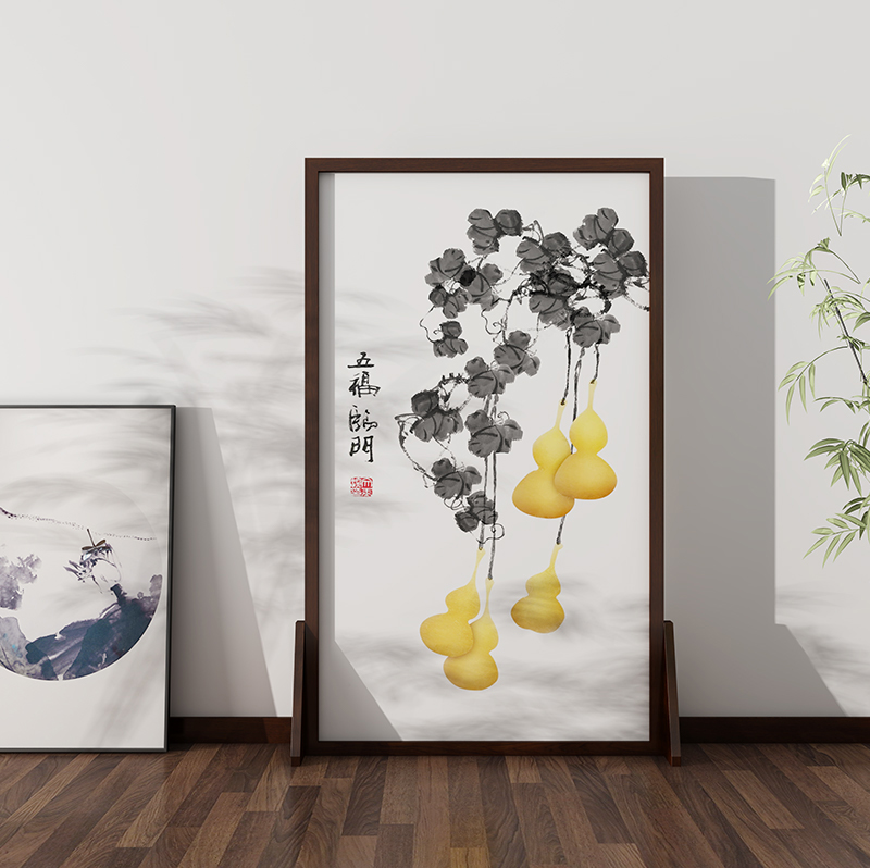 New Chinese solid wood screen Xuan Guanguan gourd Merchants Wufu Linmendoor Home Bedroom shielded partition Living room seat screen