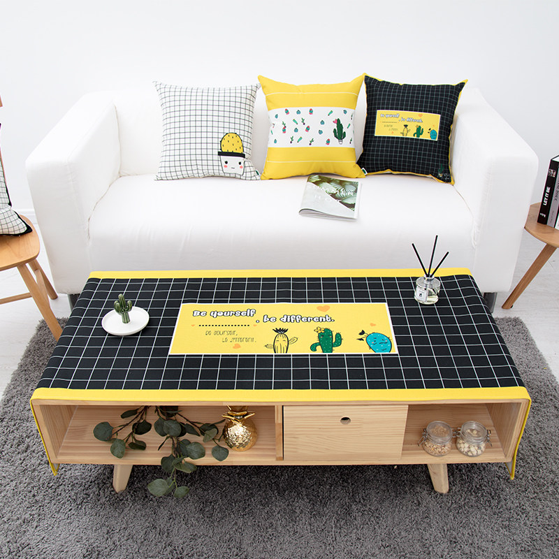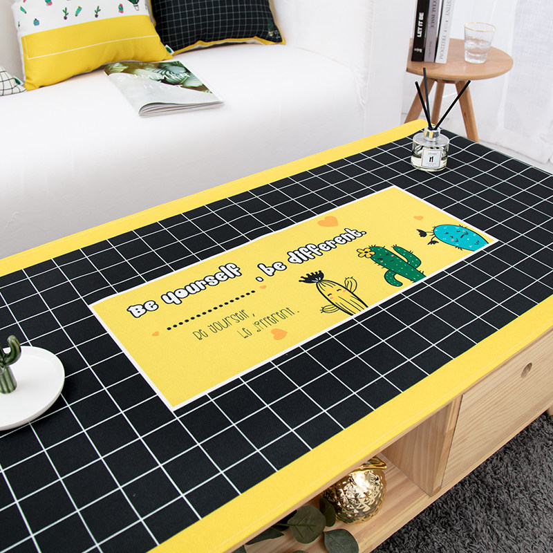 ins wind fresh cactus lattice waterproof coffee table cloth thickened cotton and linen anti-scalding dust-proof table cover cloth rectangle