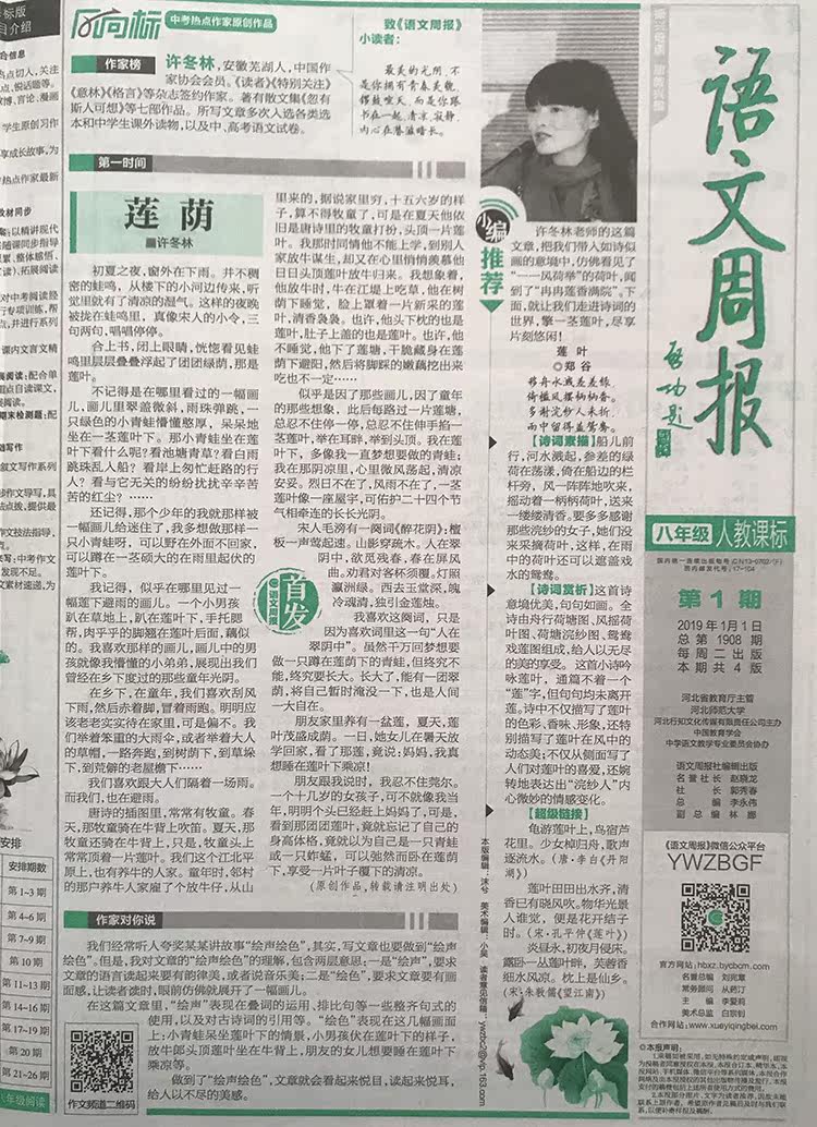 Chinese Weekly Eighth Grade Volume One Junior High School Two-person Teaching Curriculum Standard Synchronous Tutoring Newspaper Last Semester