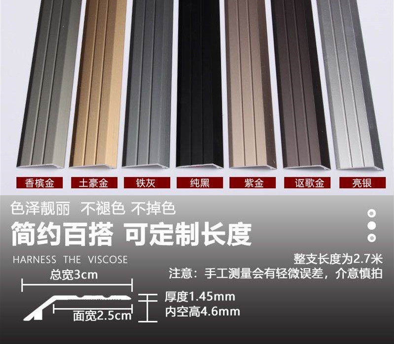 SPC stone plastic floor Aluminum alloy edge strip PVC plastic floor pressure-wrapped edge strip T-shaped bilateral strip Self-adhesive hypotenuse