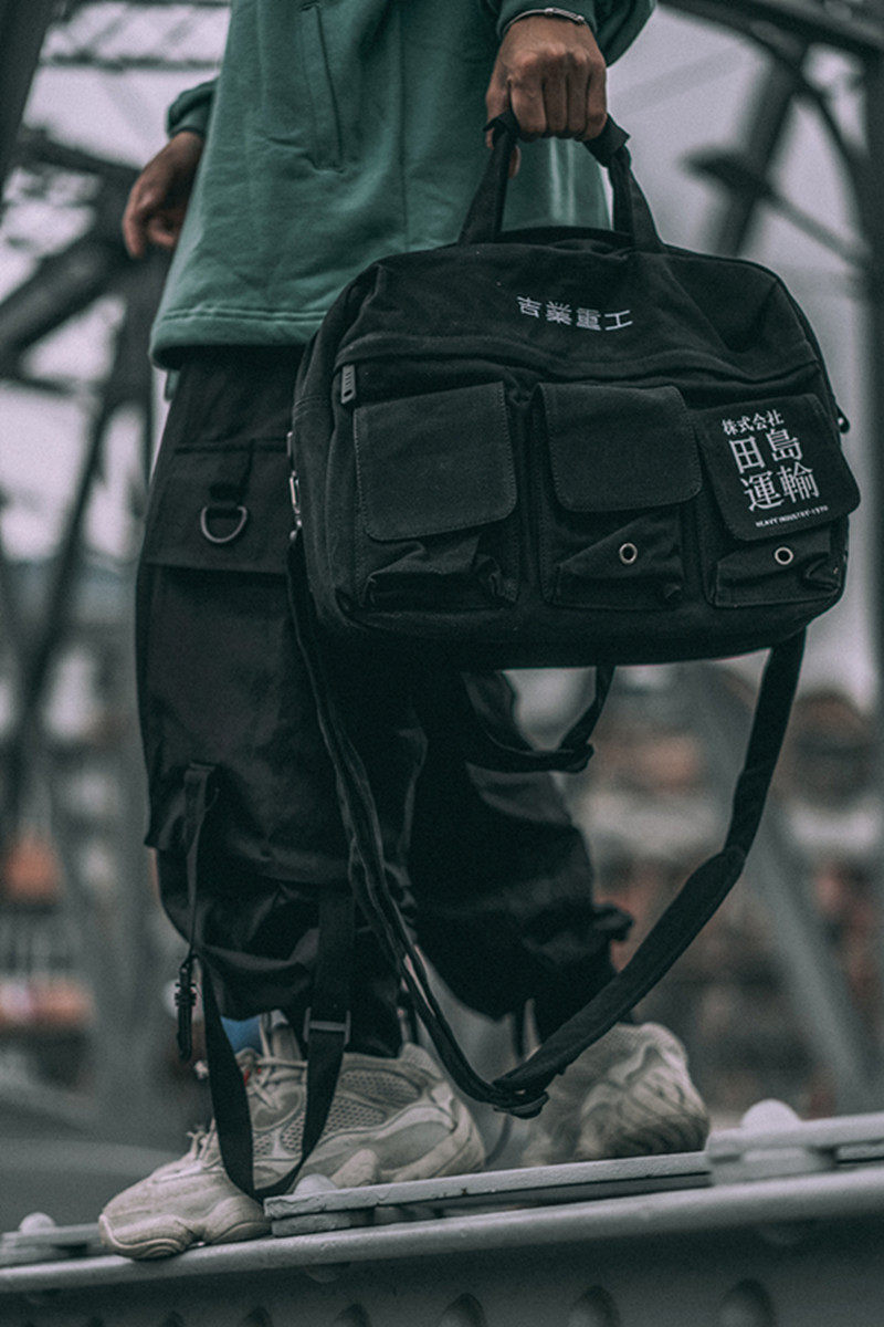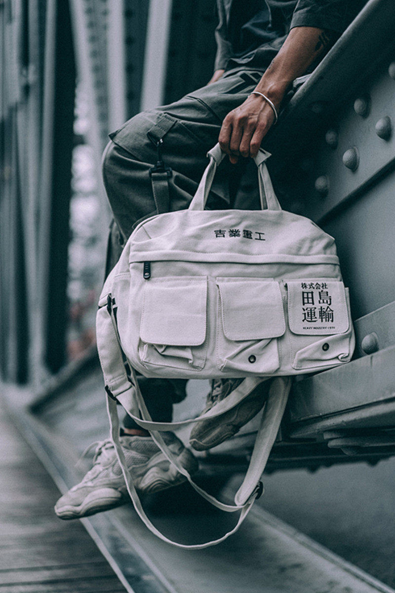 Giye Heavy Industry Package Pack for men and women Inclined Satchel Fields Island Transport Canvas Multi-Pocket Single Shoulder Bag Student Hand Satchel Wave