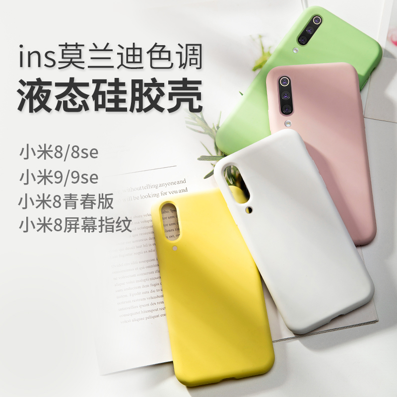 Xiaomi 9 mobile phone protective case liquid silicone 8 sets 8 youth version Xiaomi 9se ultra-thin all-inclusive anti-fall 89 screen fingerprint 89se youth version camellia red net red ins meter 89 tide men and women 89 soft s