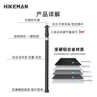 Outdoor aluminum alloy canopy pole tent front door support telescopic pole Aluminum pole ultra-long 3M telescopic column bracket thickened two