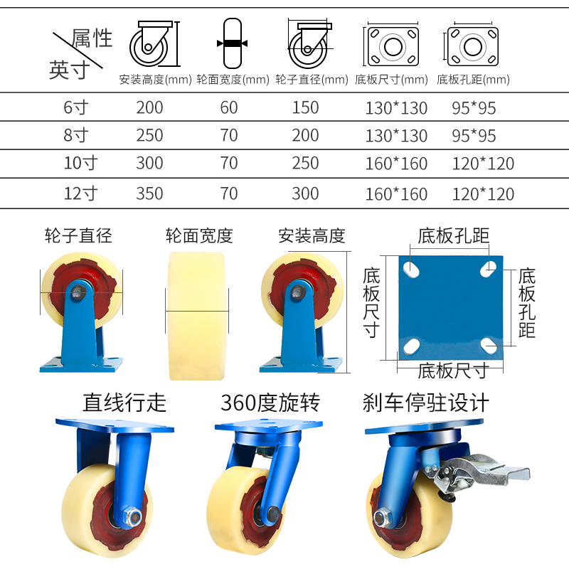 6 inch directional wheel 6 inch universal wheel 6 inch brake wheel 8 inch directional wheel 8 inch universal wheel 8 inch brake wheel 10 inch directional wheel 10 inch universal wheel 10 inch brake wheel 12 inch