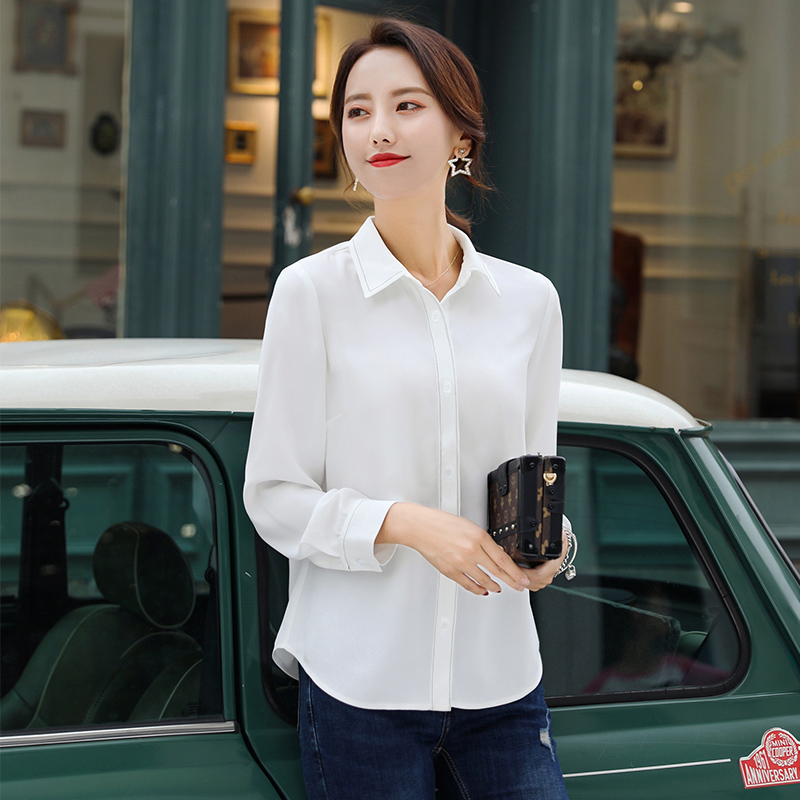 Dip feel overalls dress interview professional loose line students Korean black temperament long sleeve chiffon shirt Women
