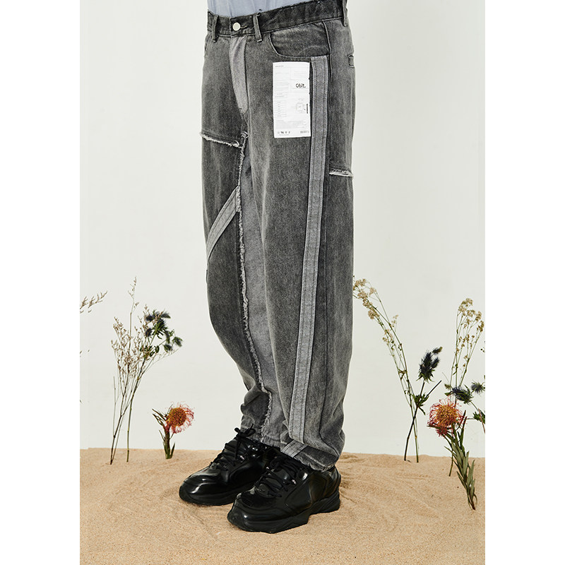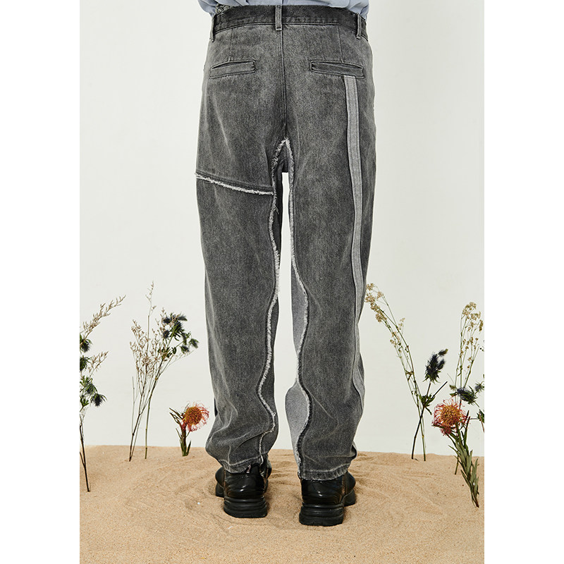 harshandcruel deconstructed design stitching loose washed denim trousers men and women tide R1SE Zhao Lei with the same paragraph