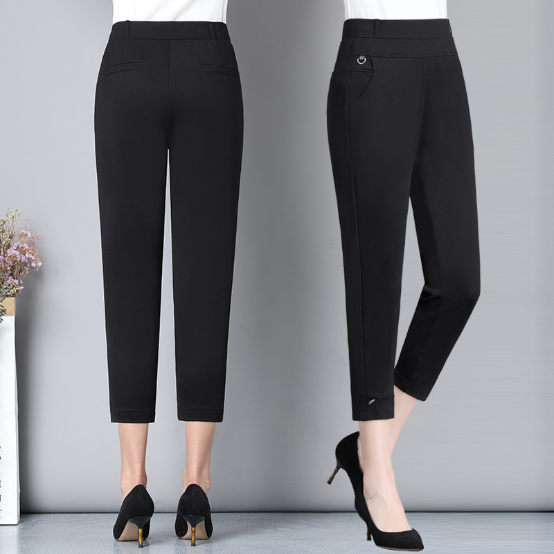 Mom's summer pants thin section eight-point pants middle-aged 40-50 years old elastic waist high waist middle-aged and elderly pants female summer