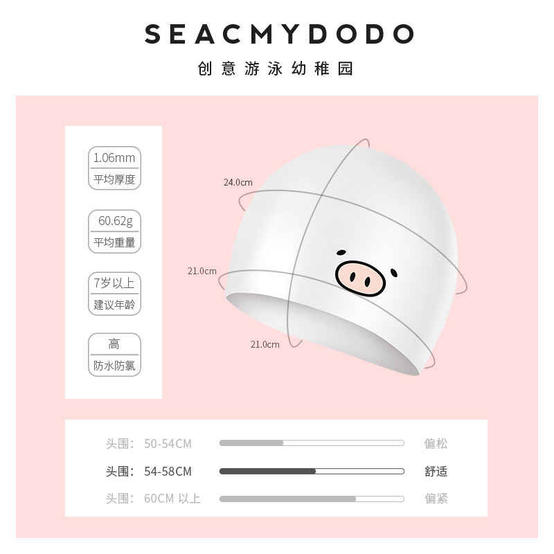 seacmydodo waterproof swimming cap female cartoon pig silicone large swimming cap cute fashion not strangling long hair