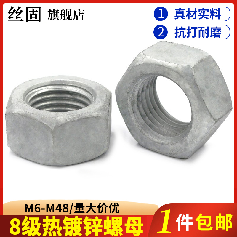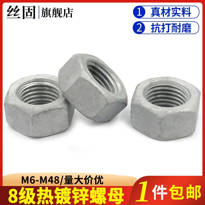 GB6170 hot dip galvanized hexagon nut 8 grade hot dip zinc reaming nut M8M10M12M16M20M22M24M30
