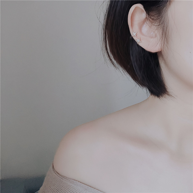 Six-pointed star ear clip Star ear bone clip Small no ear pierced earrings exquisite earrings Korean female eight-pointed star cold wind