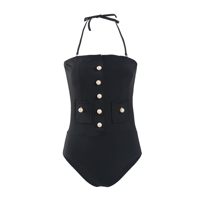 South Korean inins French style retro superior small balsamic wind black swimsuit with body covered with red holiday swimsuit woman