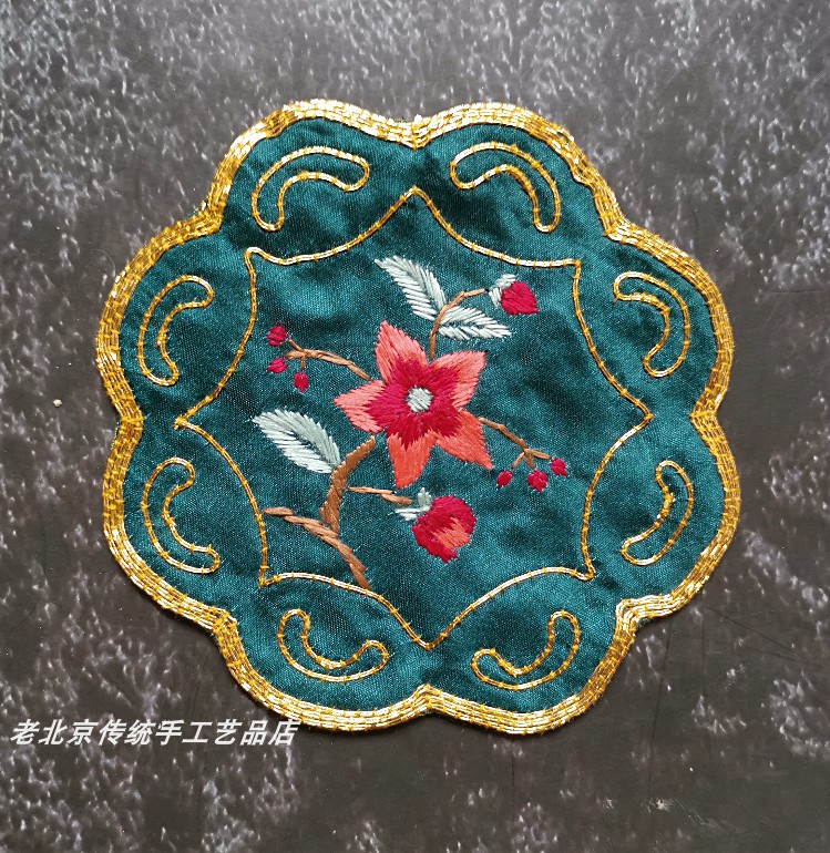 Plate gold mat Chinese cup cup cup cup cup cup cup cup cup cup garment feature gifts manual embroidery old embroidery piece