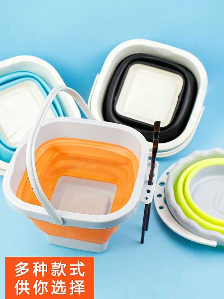 Silicone Bucket Large Number Folding Water Powder Bucket Painting Wash Pen Holder Student Can Flex Containing Children Bucket Pen Wash