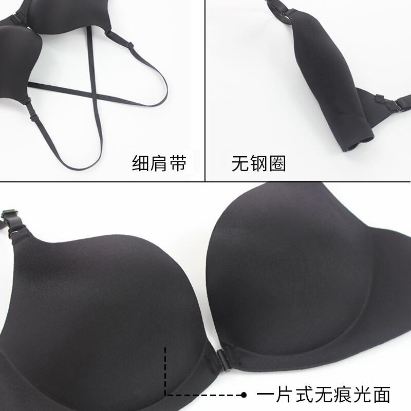 Japanese lingerie women without steel ring slim shoulder strap beauty back open back dress front buttoned with small chest sexy non-slip straight shoulder bra