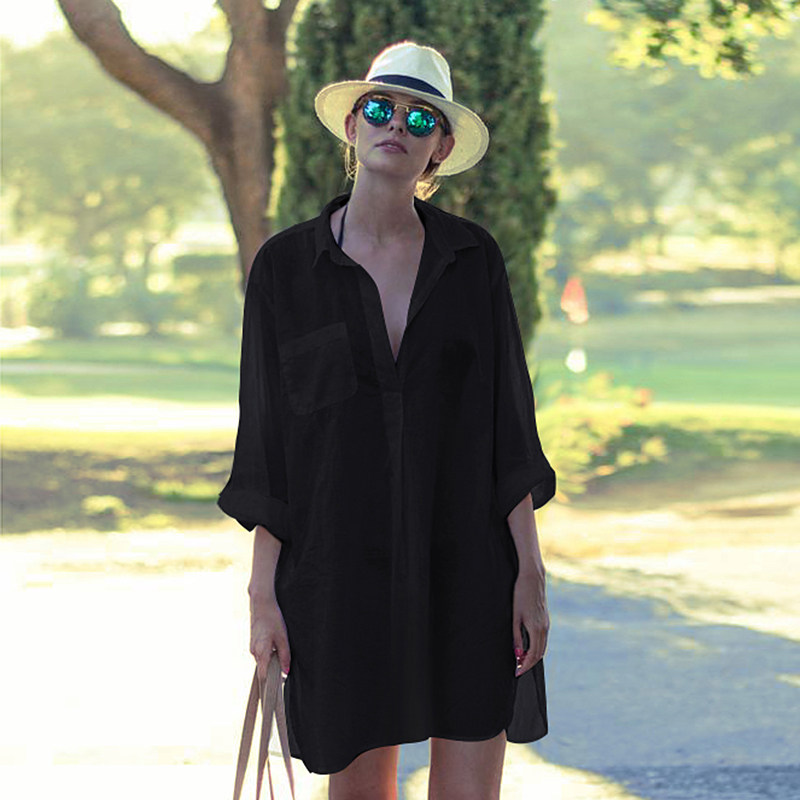 White hooded shirt, loose and thin shirt, long-sleeved sunscreen bikini, outer swimsuit jacket, beachwear women