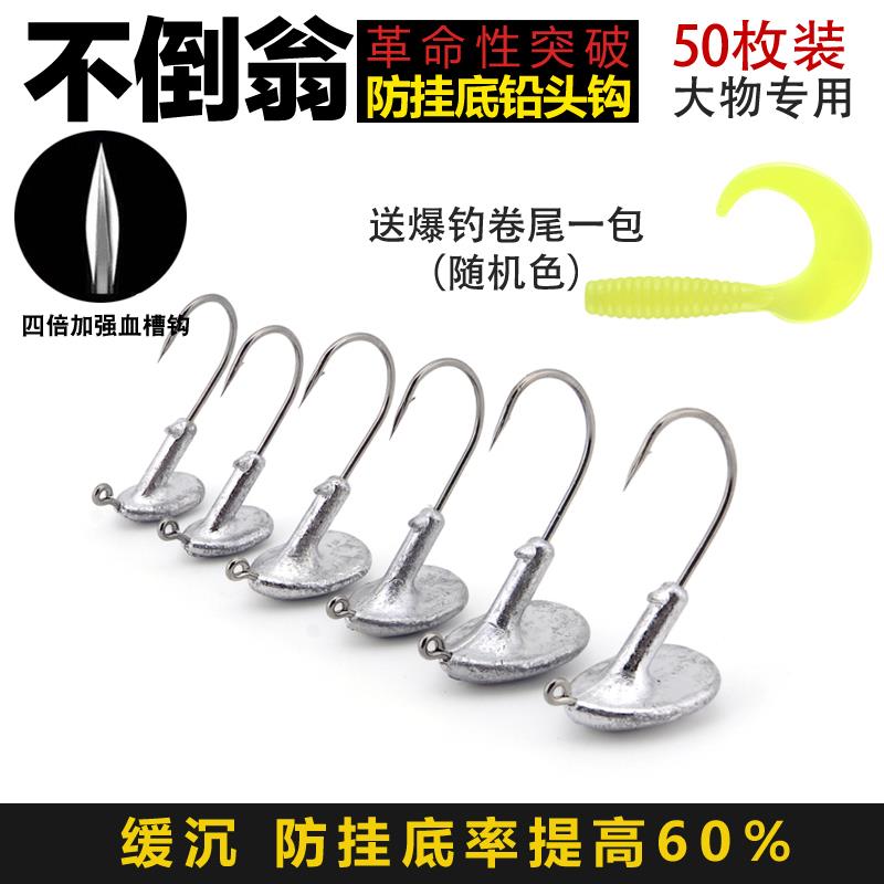 50 pieces reinforced lead head hook blood trough hook Luya bait Soft worm Soft bait hook perch Alice mouth Mandarin fish Sea bass t-tail crank