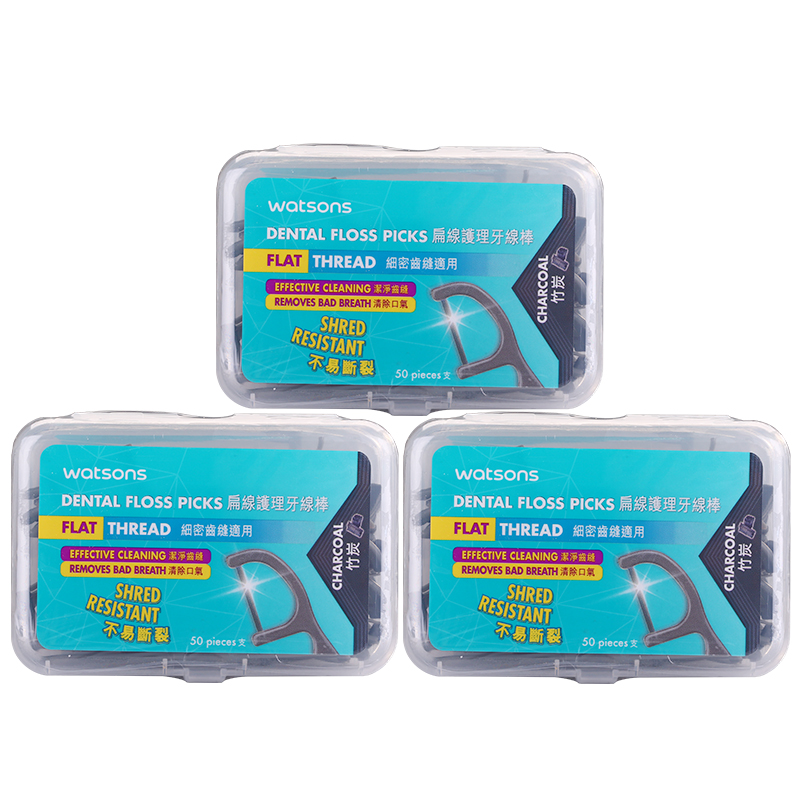 Watsons Dental Floss Bamboo charcoal flat line ultra-fine flossing stick clean mouth family pack 3 boxes 150 pcs