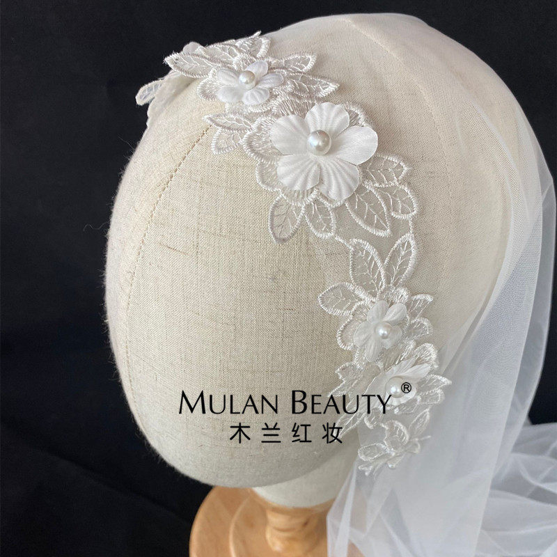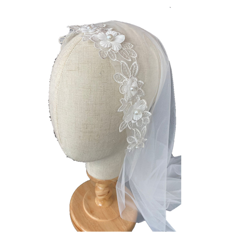 Retro Korean-style bridal head yarn Monolayer Lace Flowers Wedding Pearl Headwear Brigade Pat on the Genuine Styling Long Trailing
