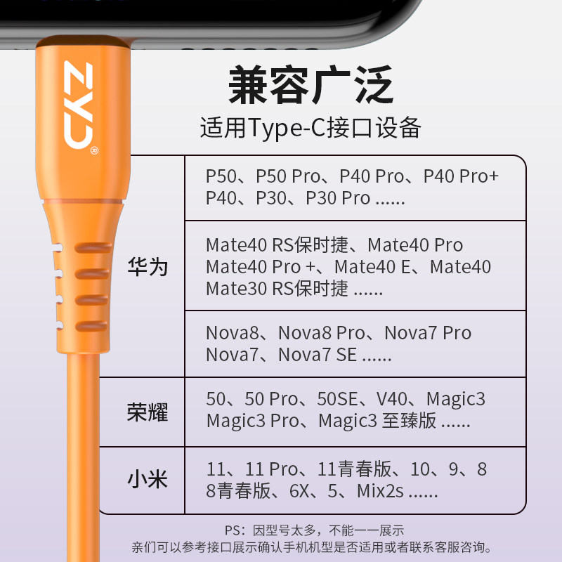 zyd best guest ultra soft typec data line applicable Huawei mate40 charging line p30 Xiaomi 11 Chi Hui mobile phone line elbow opporeno flash charge line vivox6
