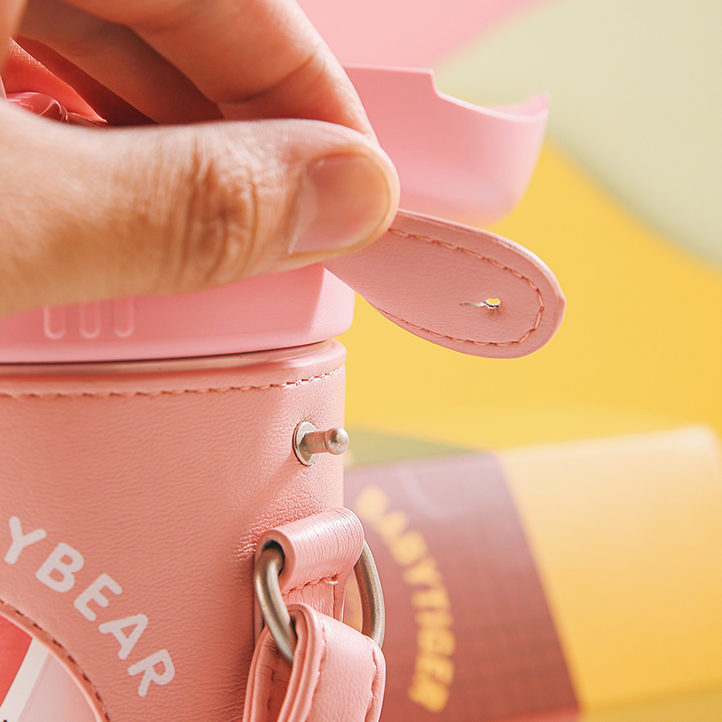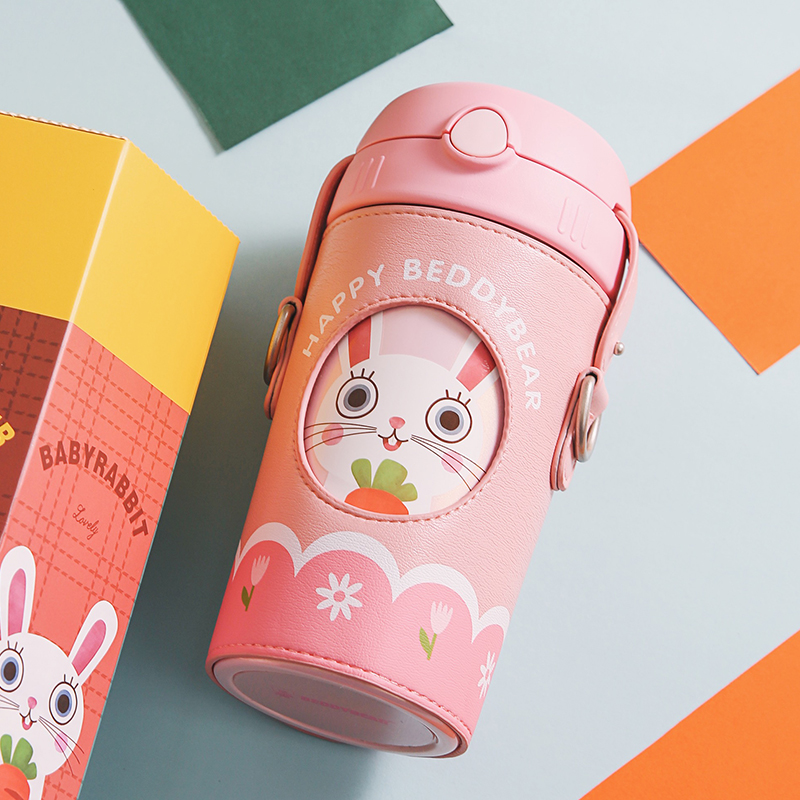 Cup with bear children's insulated cup stainless steel student male and female cartoon Animals Big belly cup portable cuddling bag straw water glass