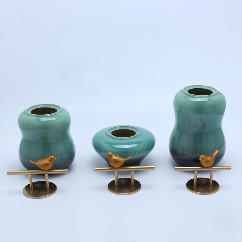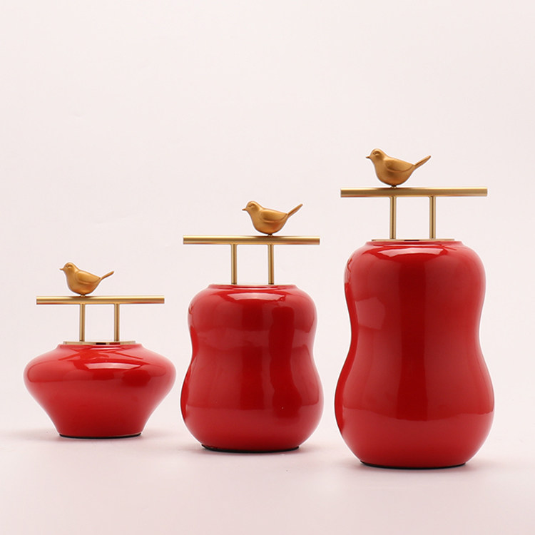 Modern new Chinese creative ceramic red storage tank copper bird ornaments model room soft decoration designer decoration
