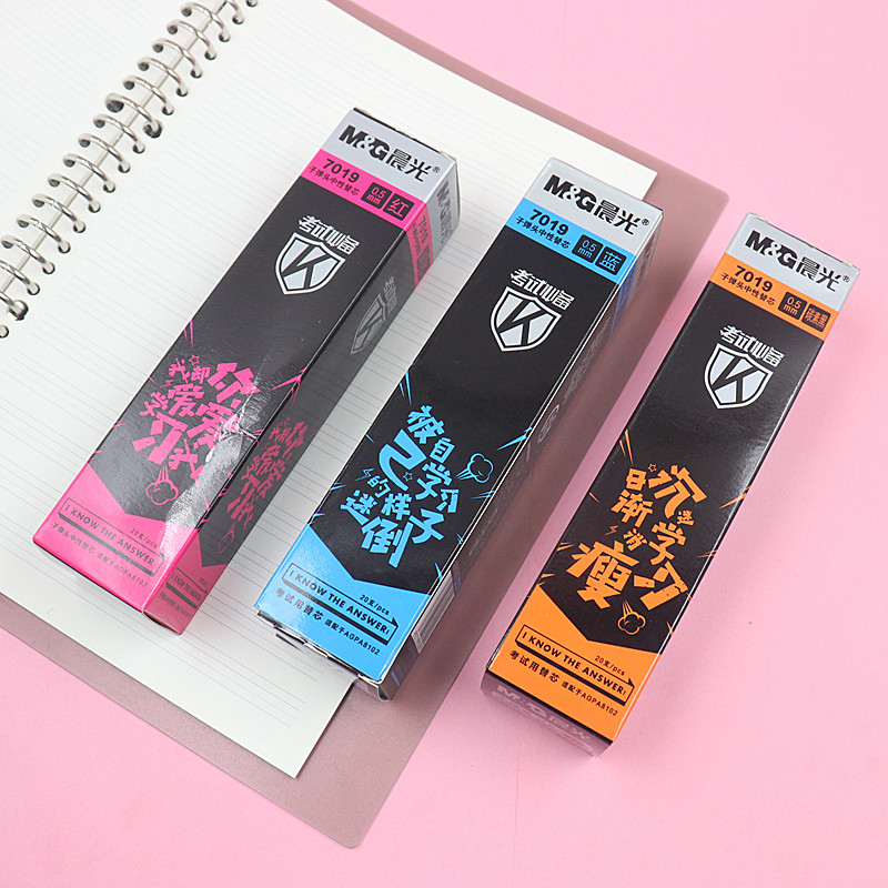 Morning Light Stationery 7019 Exam Neutral Pen Replacement Core Bullet Head Water-based Pen Core 0 5mm Collegiate Carbon Black Blue Red