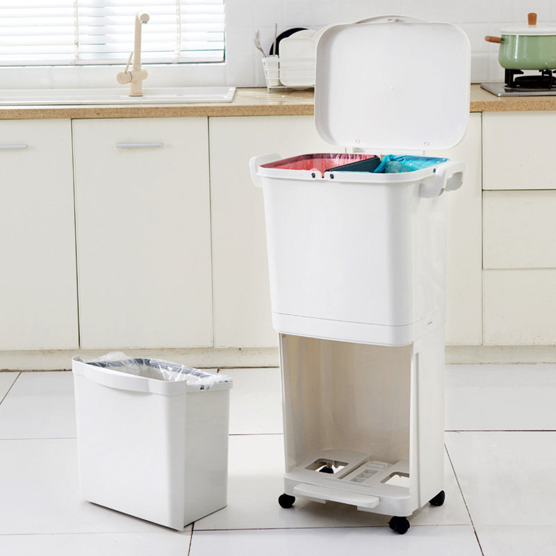 GARBAGE SORTING BINS HOUSEHOLD JAPAN STYLE LARGE NUMBER WITH LID KITCHEN DRY AND WET SEPARATION PEDALING DOUBLE BUCKET LATRASH CANS