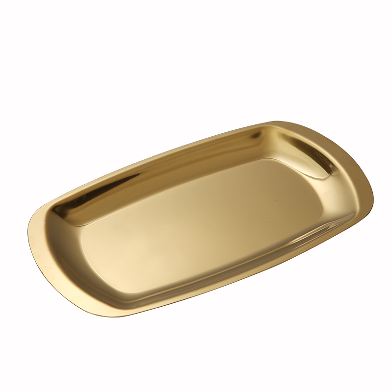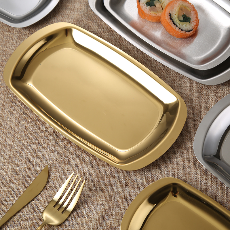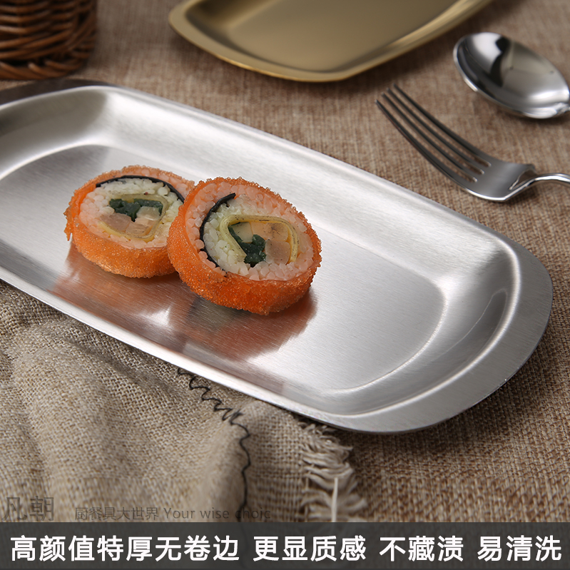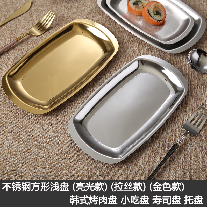 Stainless steel rectangular plate Barbecue plate Barbecue snack plate Japanese and Korean sushi plate Flat gold plate Towel tray
