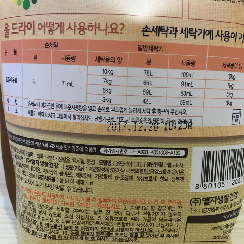 South Korea imported LG neutral soft laundry detergent low foam mild non-irritating plant extract bag 1300ml