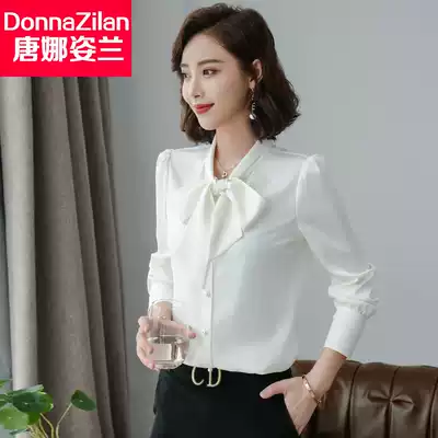Long sleeve chiffon shirt women 2021 new spring and autumn fashion high end foreign pie White top bow professional shirt