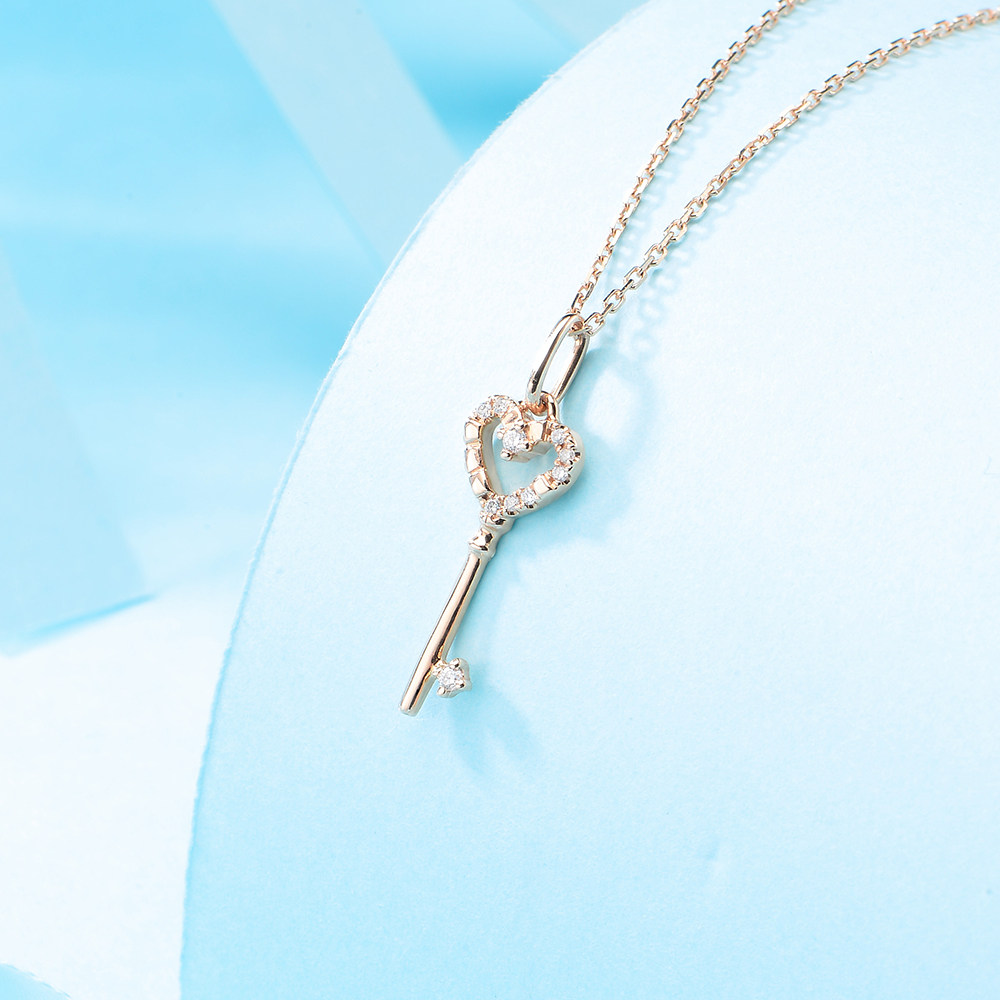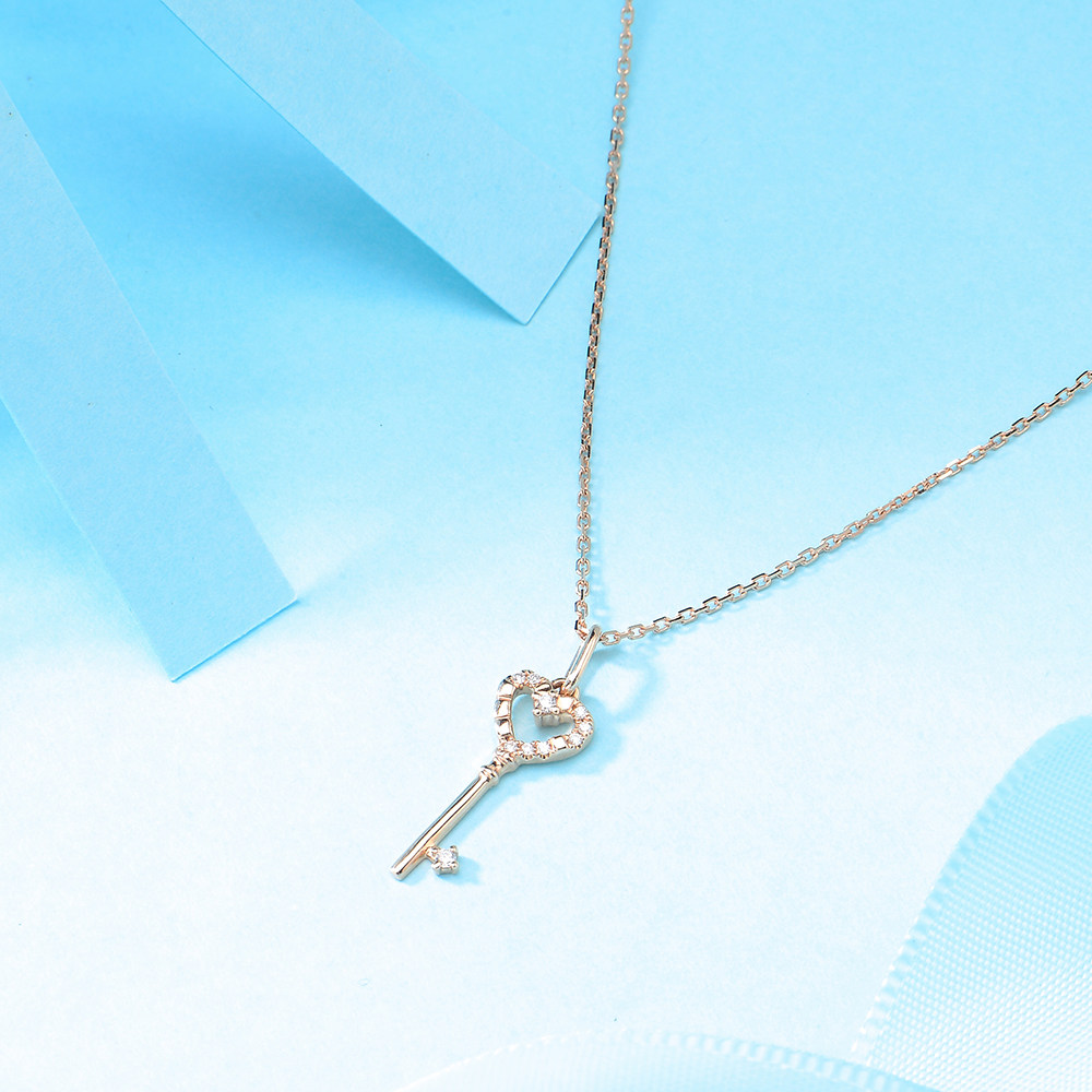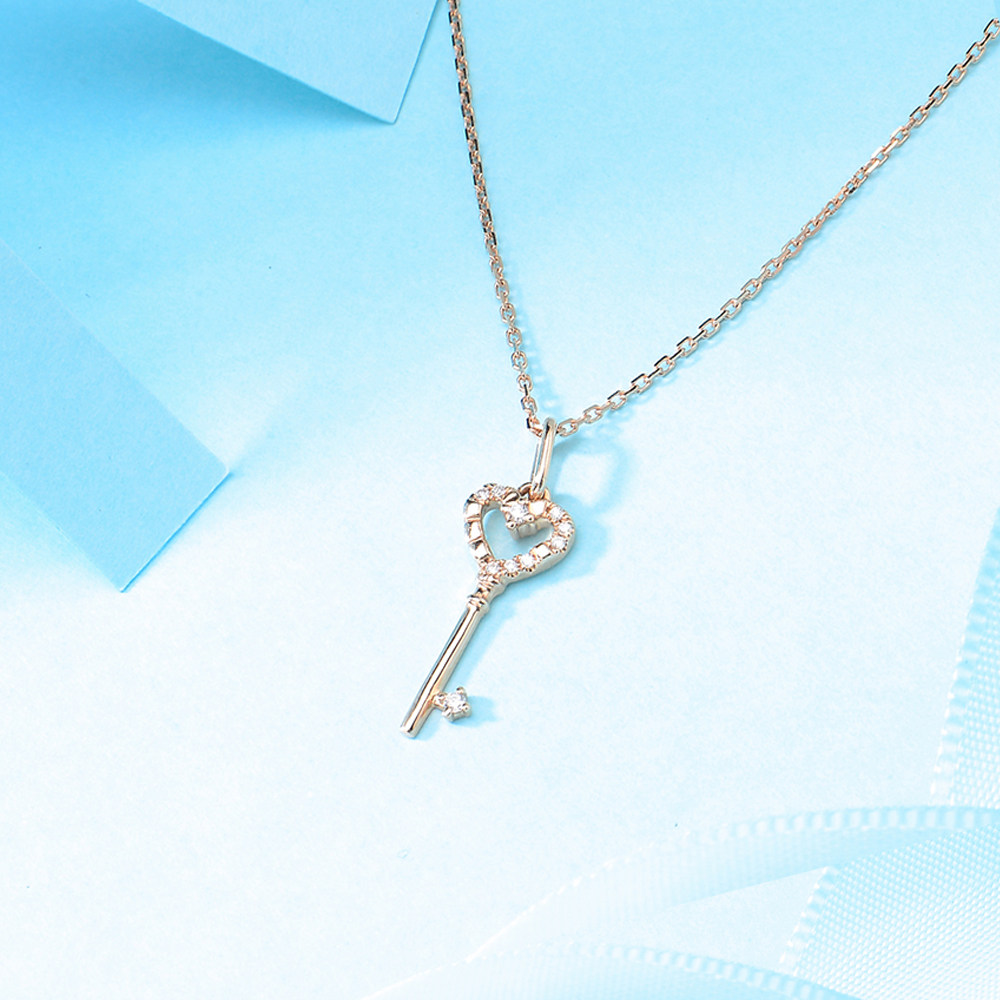 18K White Heart Key Necklace Women's Diamond Cluster Rose Gold Pendant Custom Platinum Clavicle Chain Small Fresh
