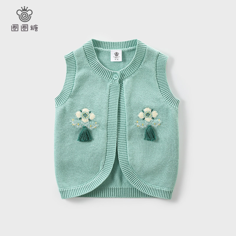 Circle sugar girls spring and Autumn wear waistcoat girls knitted waistcoat Children's horse clip baby wool vest