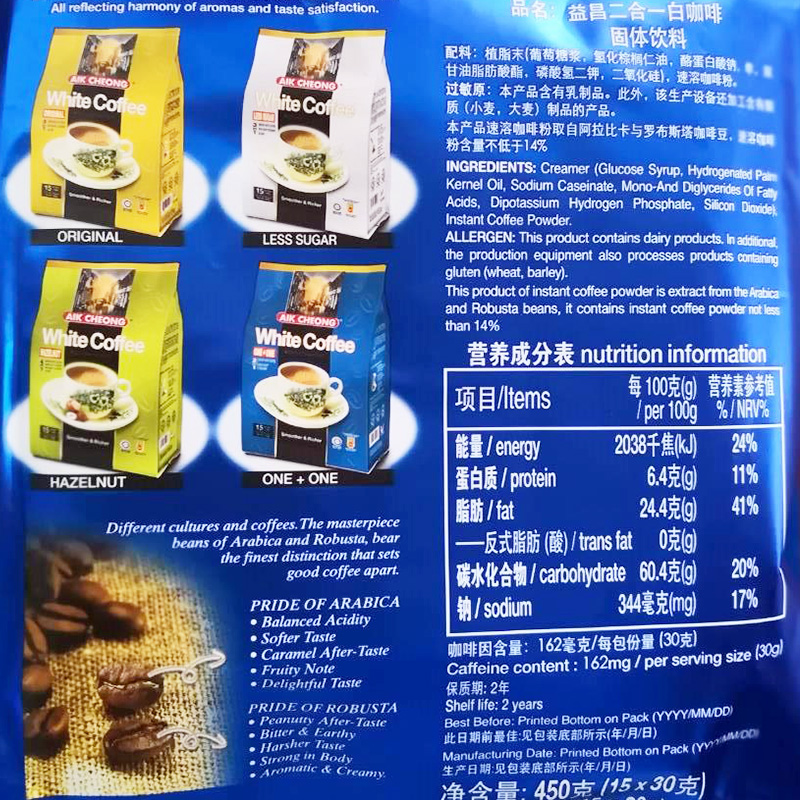 Yichang Old Streets White Coffee Without Cane Sugar Added Two-in-one Instant Coffee Powder 450g * 3 Bag Malaysia Imports