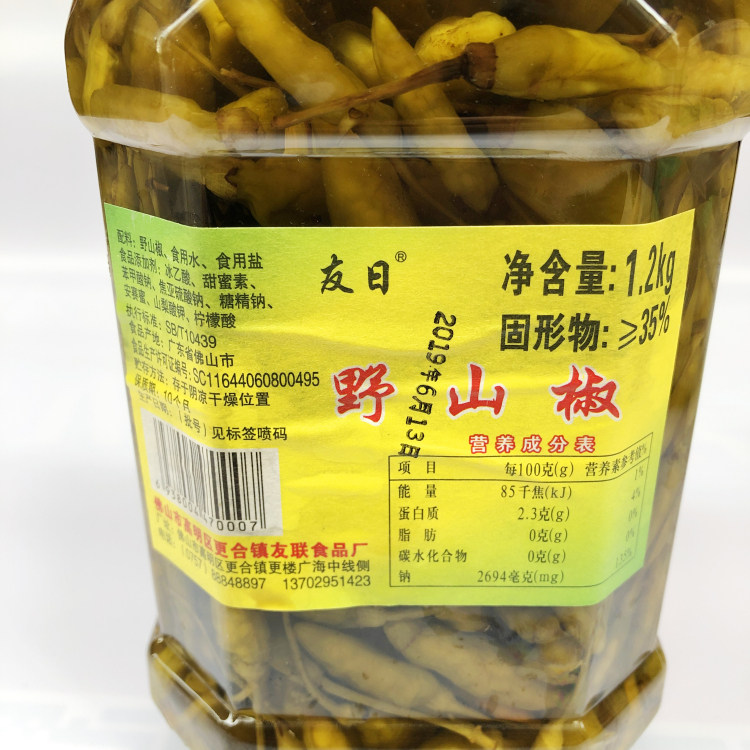 Wild pepper 1 2kg Youri hot and sour kimchi Youlian Fuxing 1 3kg catering pickled rice 1 bottle Guangdong Foshan