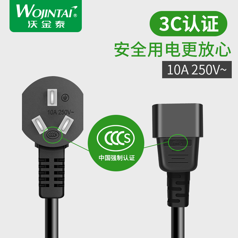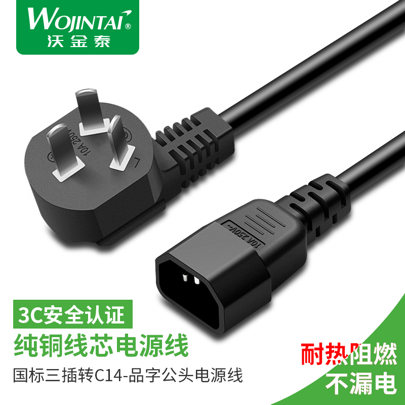 3C certified national standard three-plug power cord turn C14 1 square pure copper wire 10A plug transfer word male connection line