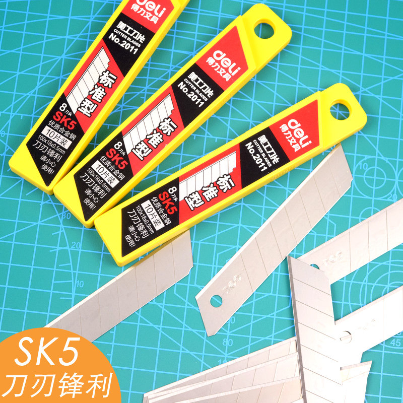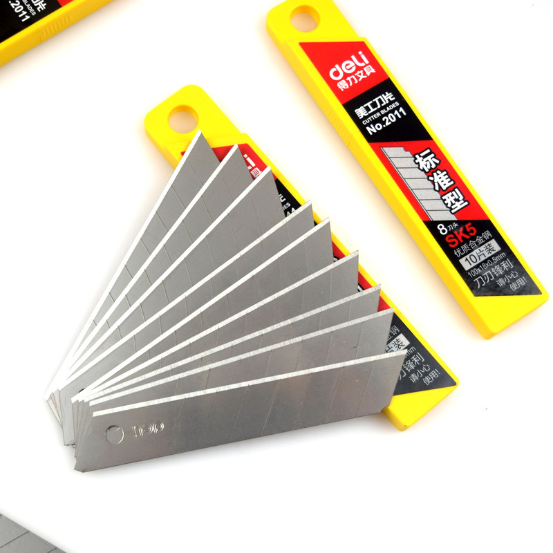 Deli 2011 blade SK5 high carbon steel art blade Large edge sharp paper cutting blade manual knife thickened paper cutting wallpaper paper cutting film knife wholesale medium blade 10 pieces