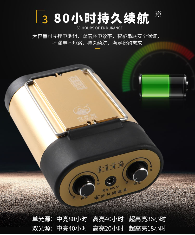 Tingfeng Pavilion night fishing lamp T20 gold eye T80 eye protection T202 super bright dual light source yellow and blue mixed dual light lamp head