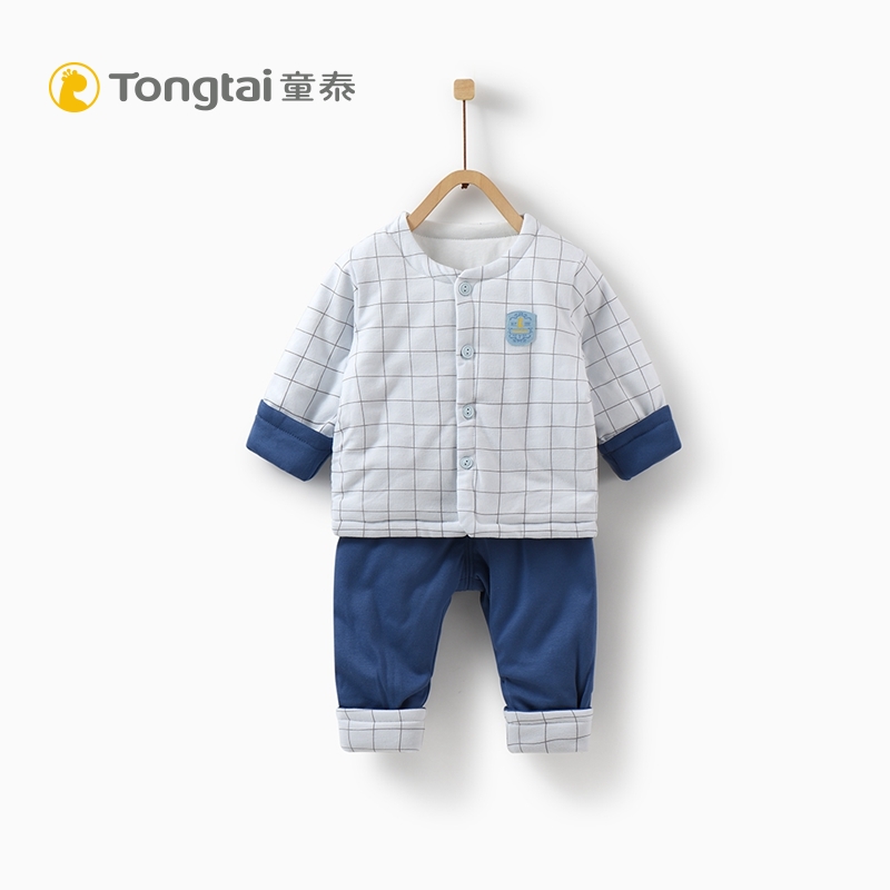 Tongtai autumn and winter new baby thin cotton suit 3-18 months of men and women baby cotton coat cotton pants two-piece set
