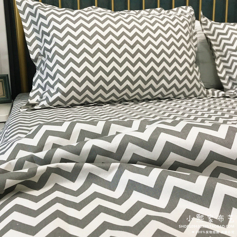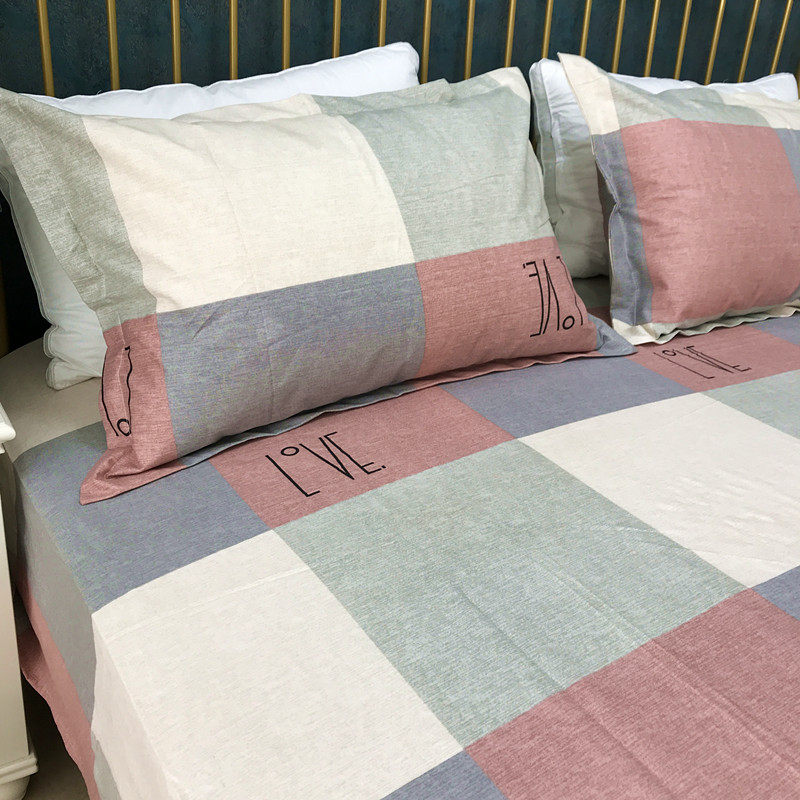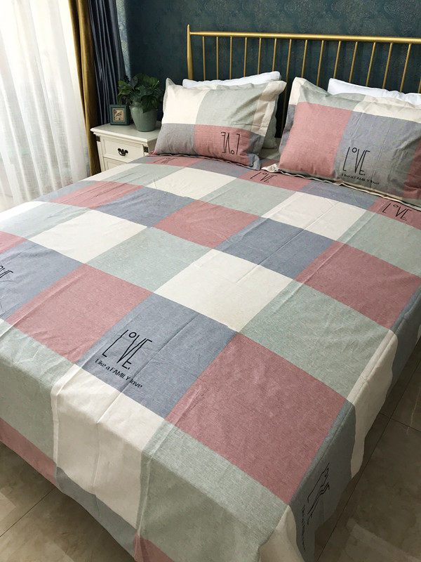 Thickened cotton rough cloth bed single piece simple plaid dormitory quilt single piece cotton and linen small canvas three-piece set