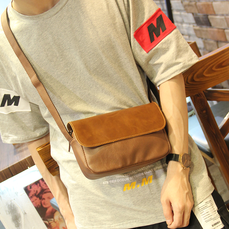Genuine leather single shoulder bag for men's students Sloping Shoulders Bag Men Ins Tide Cards Small Satchel Bag Mini Satchel Leisure Small Hanging Bag