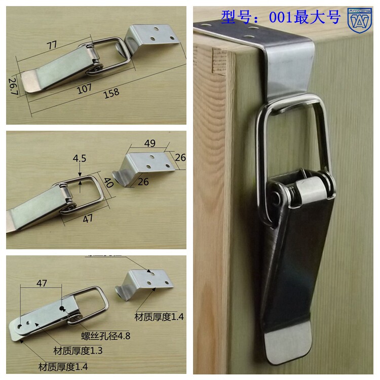 Stainless Steel 001 Bent Hook Case with wooden case Wooden Case catch straight hooked lock buckle 90 degrees Mount Luggage Spring Buckle