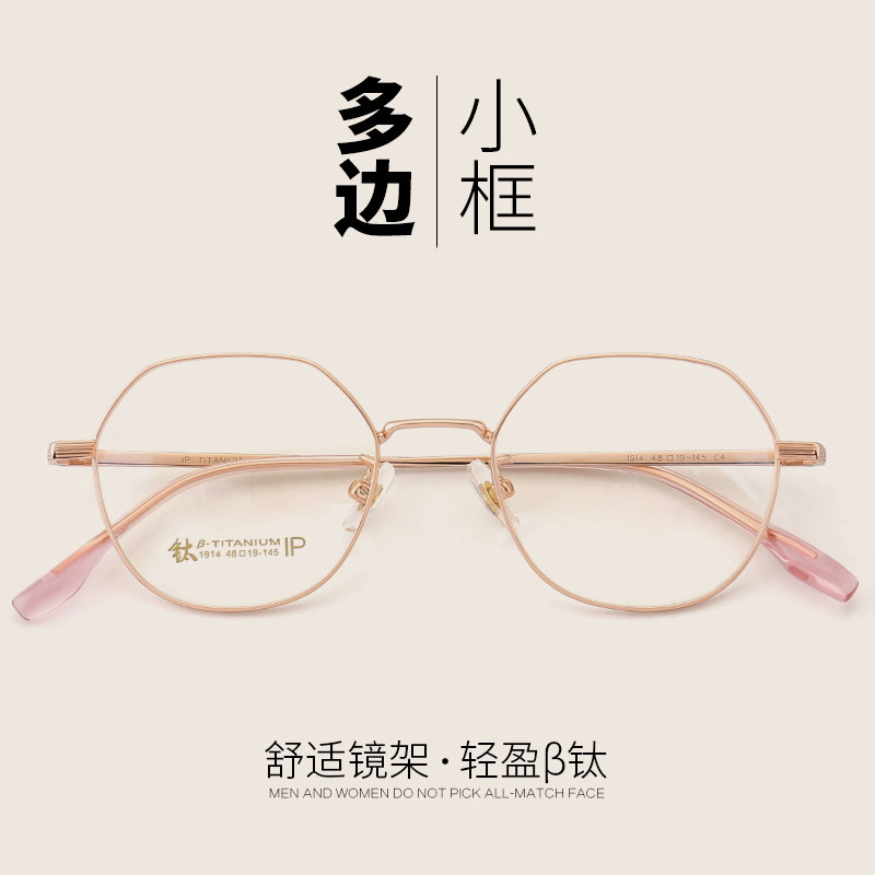Pure titanium polygonal small face spectacle frame female near eye mirror degrees net red with round face finished small frame flat light mirror male