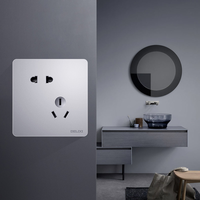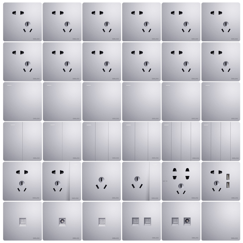 Delixi switch socket household concealed wall open five holes silver gray 6 six computer socket retro switch