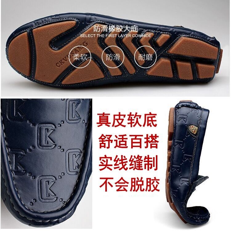 Brand Doudou Shoes Men's Trendy Summer Youth High-end Casual Leather Shoes Leather Soft Sole Driving Shoes Korean Trend Shoes