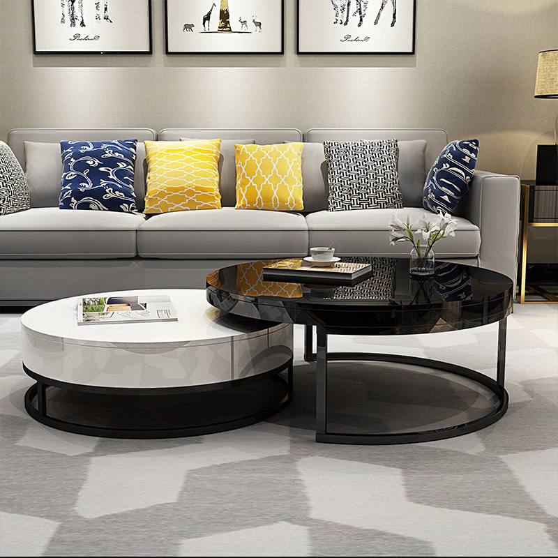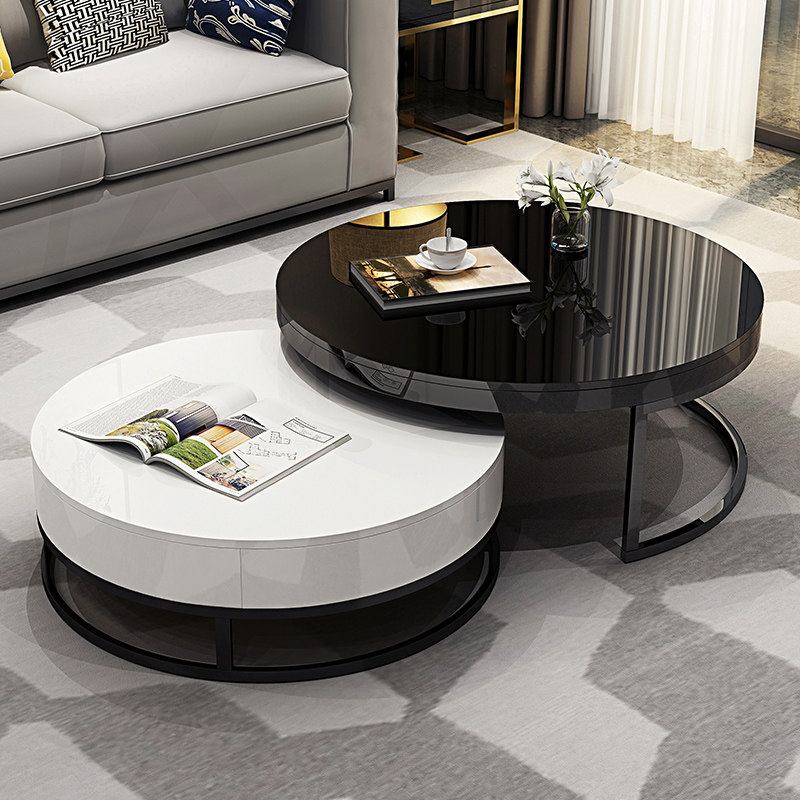 Modern minimal tea few living room small household TV cabinet combined creative personality table black and white shaped Nordic round
