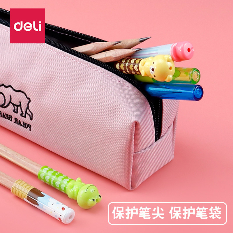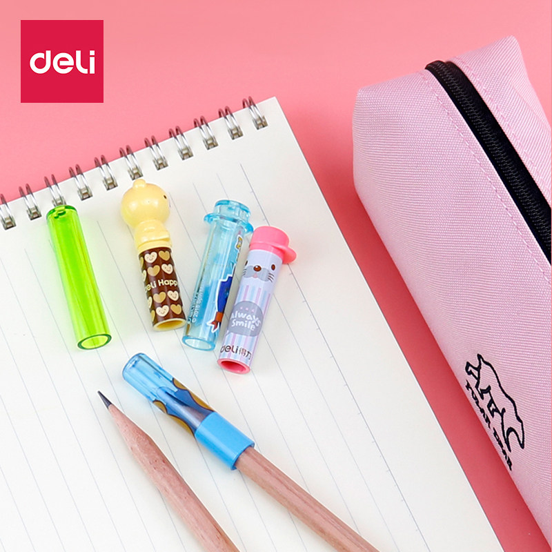 Deli pencil case Cap pen cover Primary school kindergarten children writing cartoon cute creative color transparent wood nib pen head protective cover Short pencil extension cover extender wholesale