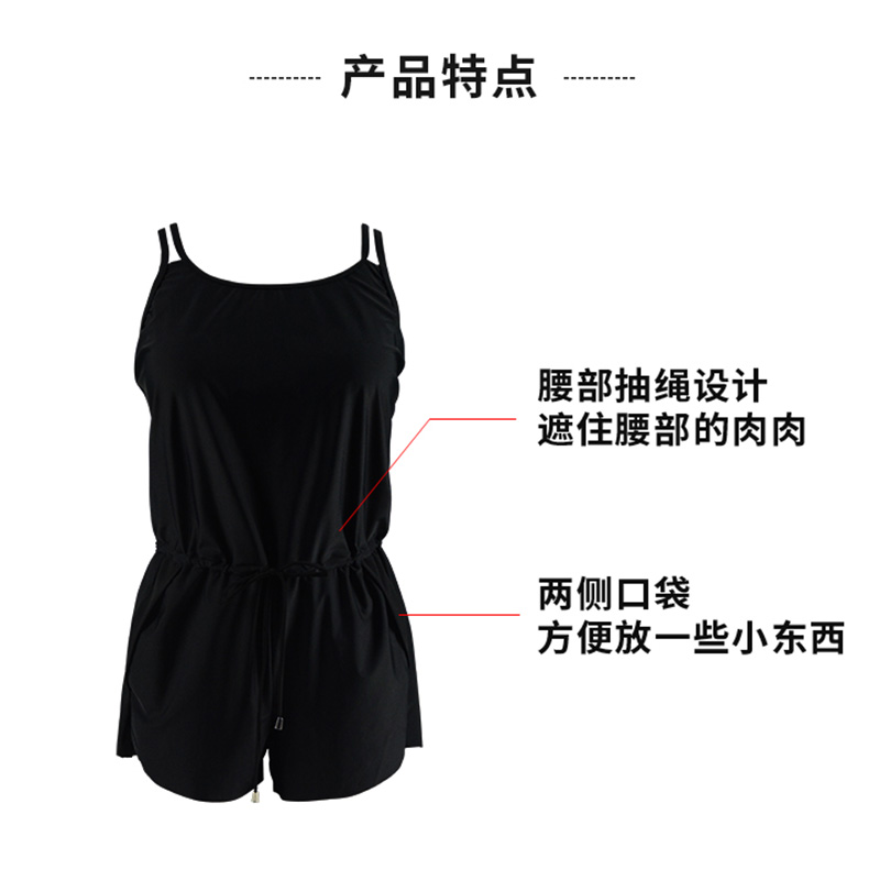 Belly-covering jumpsuit slim conservative swimsuit women's belly-covering new black casual hot spring swimming suit
