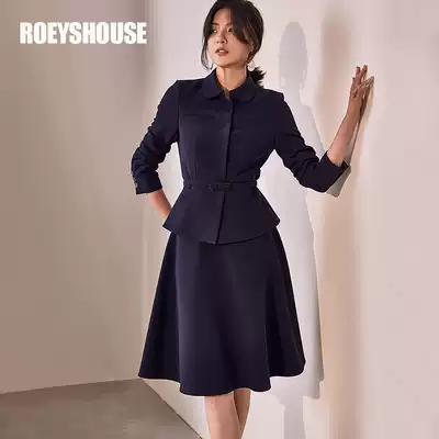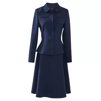 Luo Yi commuter elegant set autumn clothes new intellectual occupation big skirt dark blue two-piece set 00518